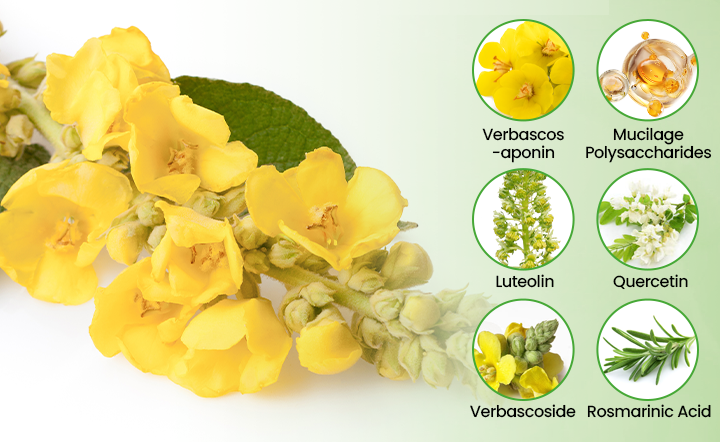 Verbascosaponin (Primary Expectorant): 12.5mg - facilitates natural mucus clearance Mucilage Polysaccharides (Demulcent): 8.7mg - soothes irritated tissues Luteolin & Quercetin (Anti-inflammatory): 6.2mg - reduces respiratory inflammation Verbascoside (Antimicrobial): 4.1mg - supports healthy respiratory environment Rosmarinic Acid (Antioxidant): 3.8mg - protects against environmental damage