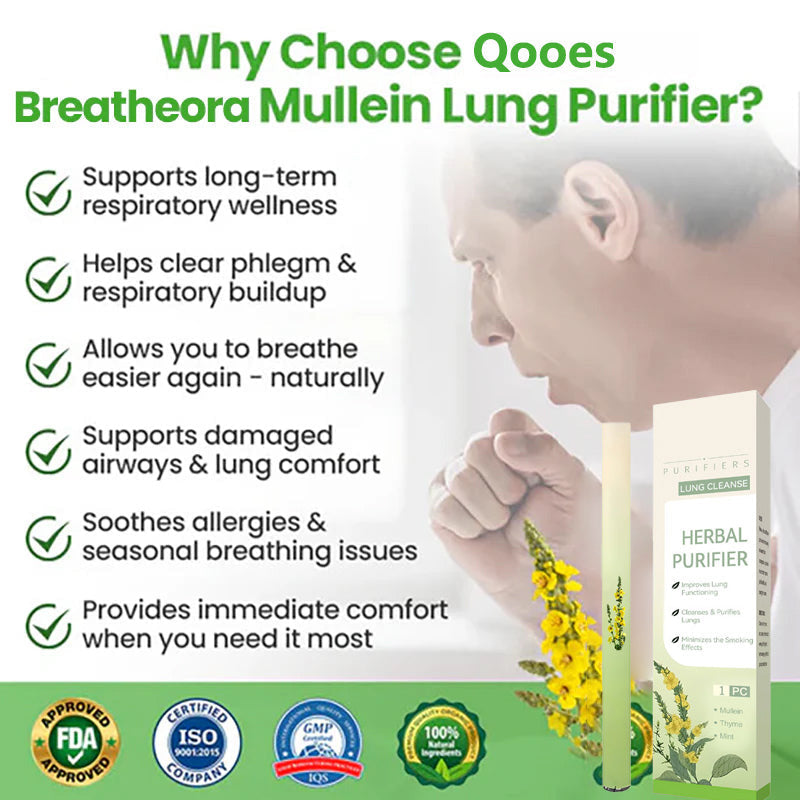 Breathe Qooes™ Mullein Aroma Diffuser helps soothe breathing discomfort, detoxify the lungs, and freshen the air in your mouth, providing a healthier, more comfortable breathing experience.